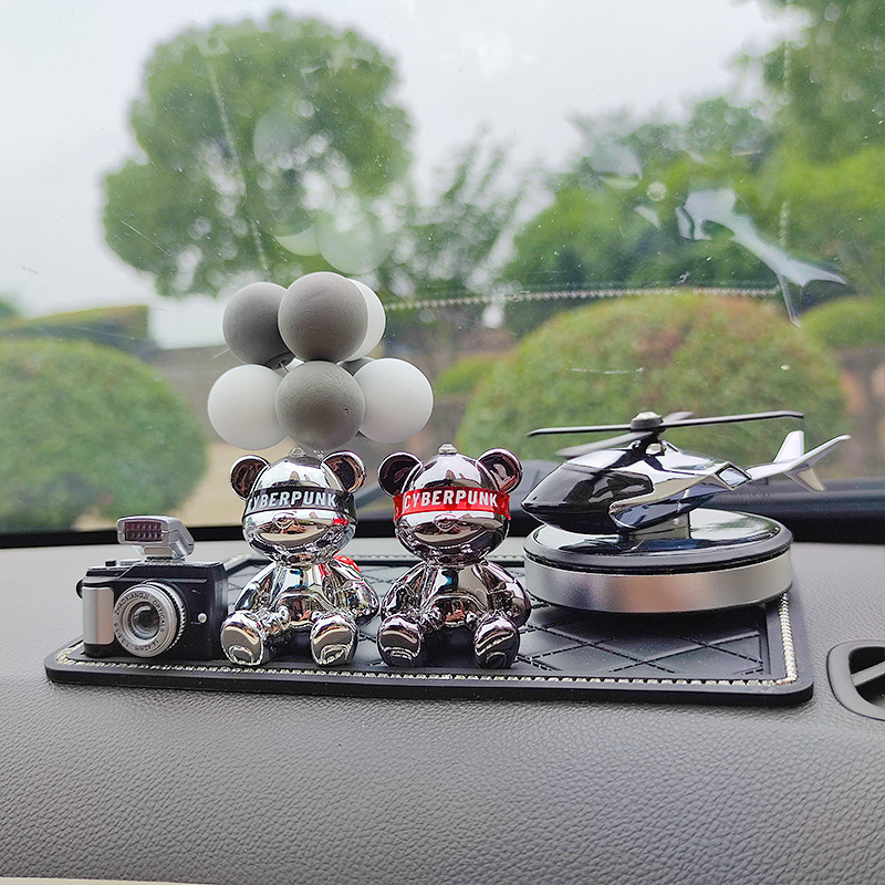 - 镀金黑熊+飞机香薰+灰白球+钻垫