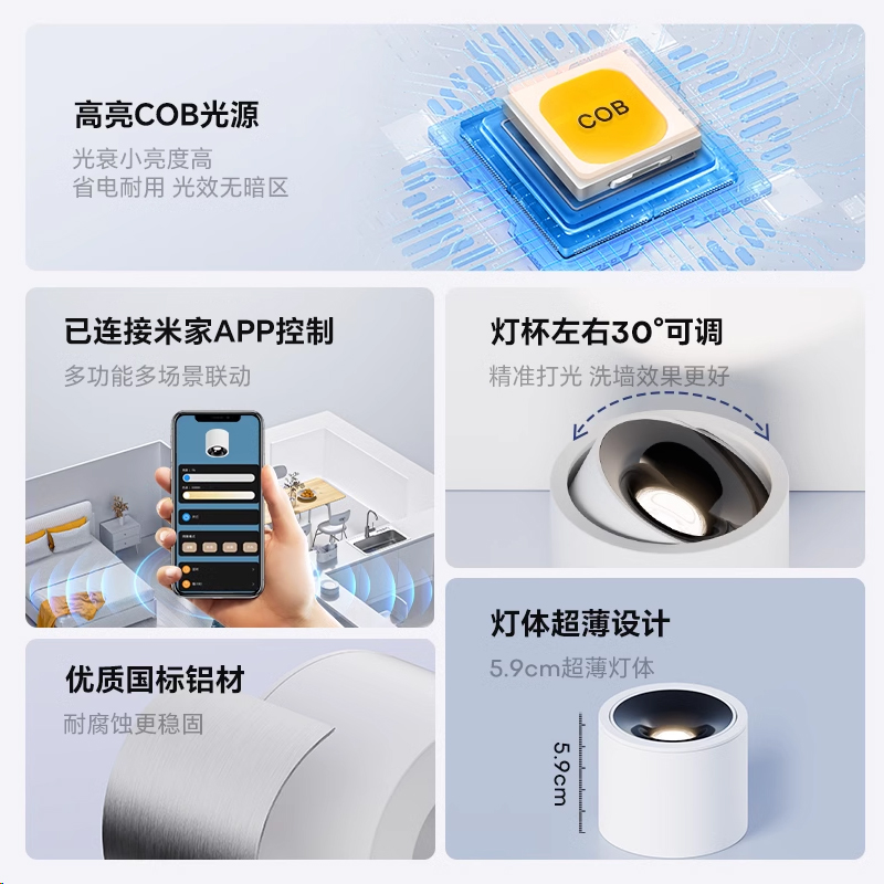 智能超薄免开孔明装led射灯可调角度防眩小山丘客厅已接入米家APP