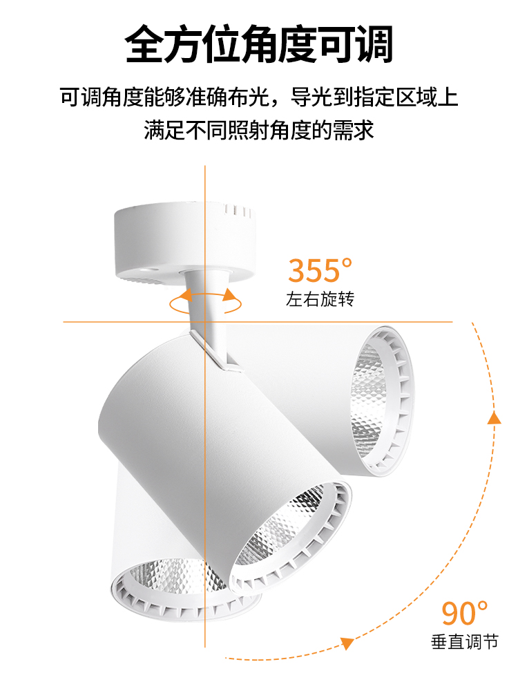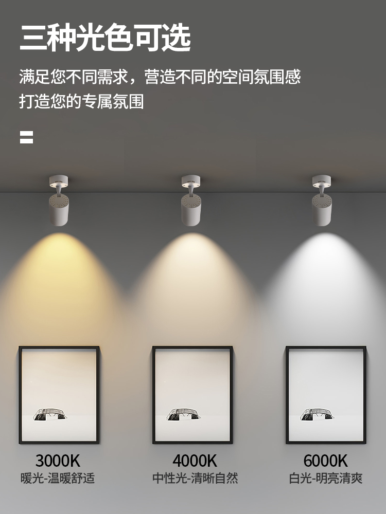明装免开孔COB射灯家用店铺商用可调角度超亮聚光吸顶筒灯天花灯