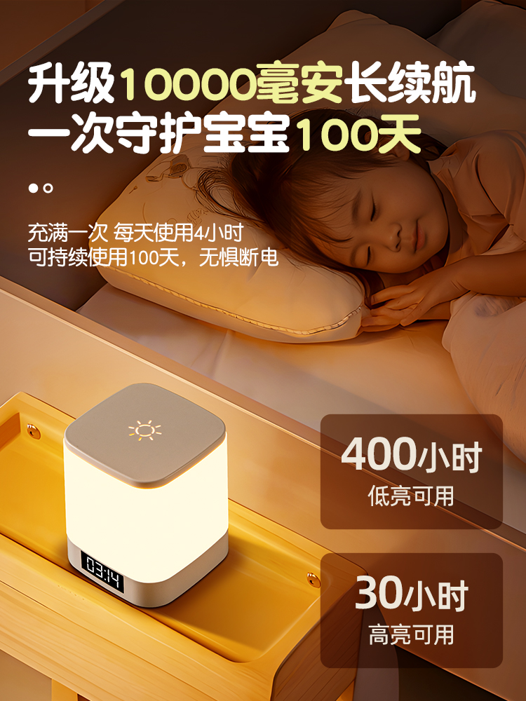 小夜灯婴儿护眼卧室睡眠灯月子宝宝房夜间拍拍充电款台灯