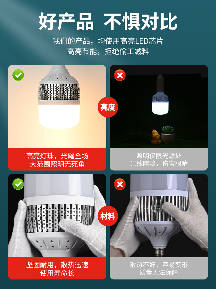 大功率led灯泡厂房仓库工业照明e27螺口工程高瓦数超亮大球泡