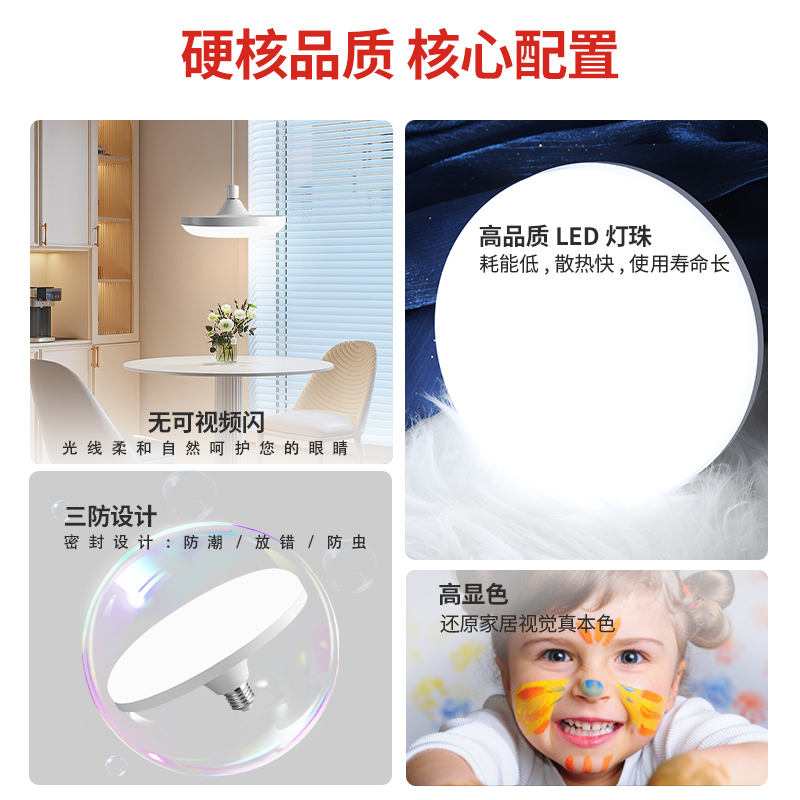 飞碟灯led超亮节能灯泡e27螺旋口防水家用车间大功率球泡