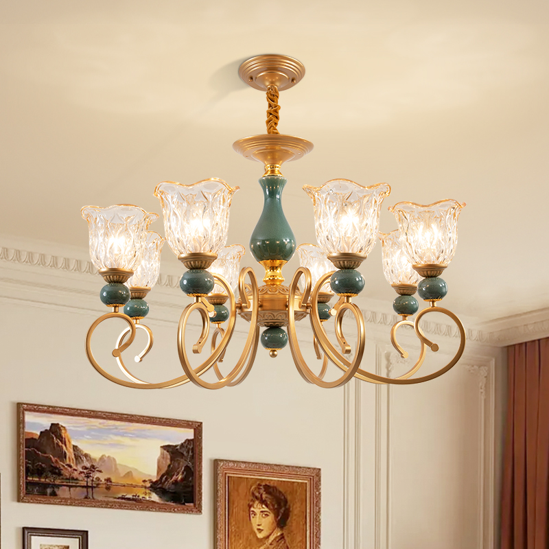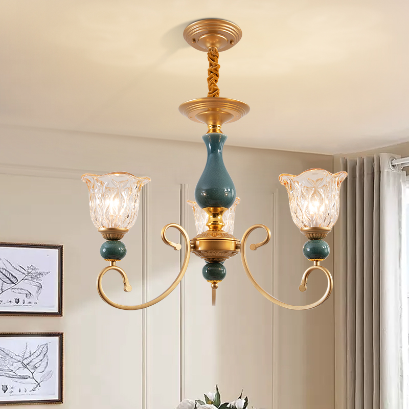 欧式美式陶瓷吊灯客厅餐厅卧室奢华大气吊灯玻璃灯罩仿古吊灯包邮