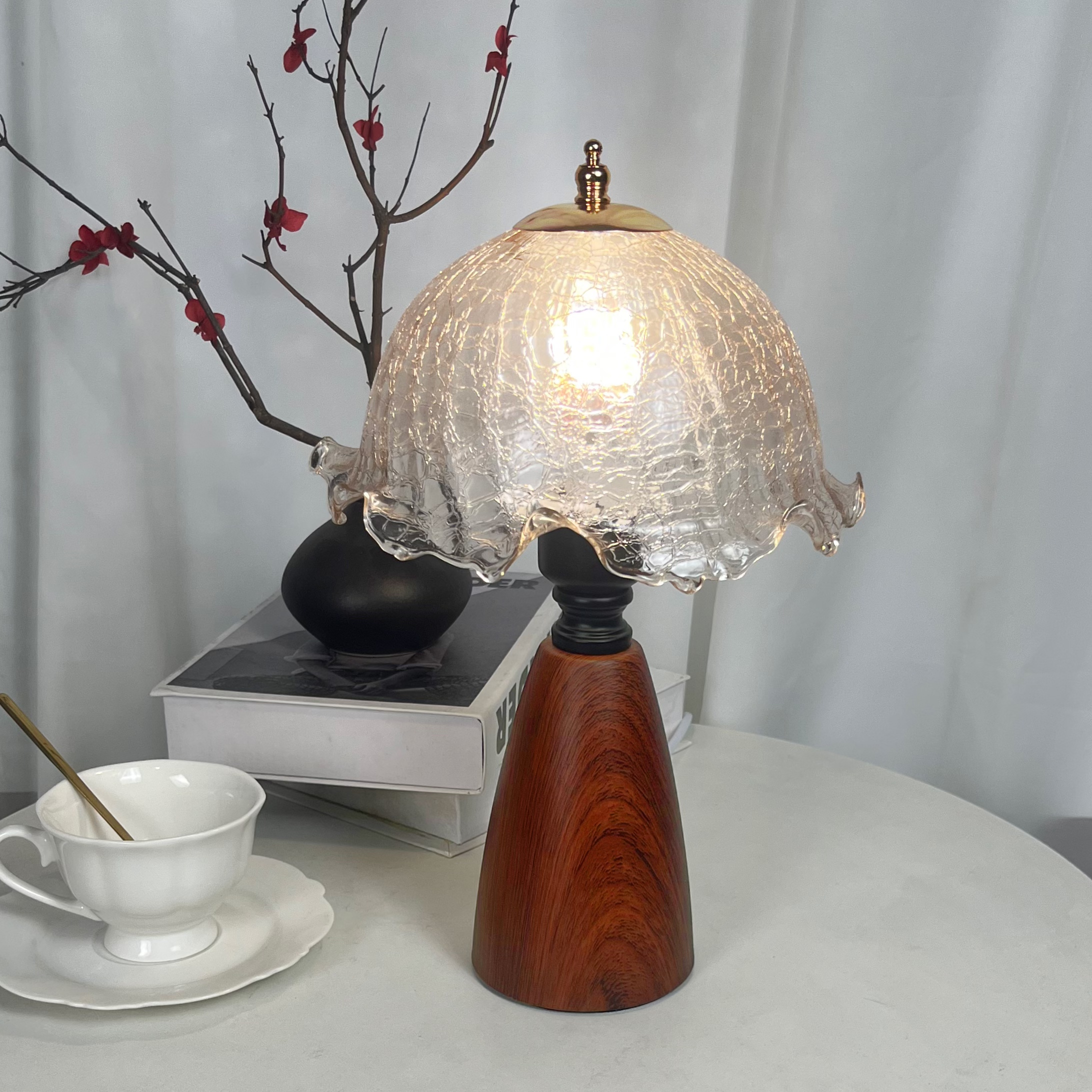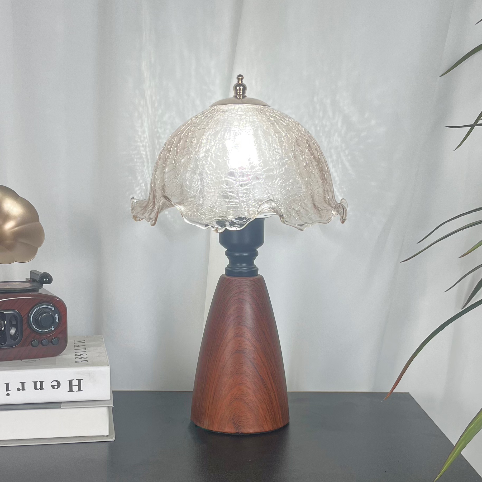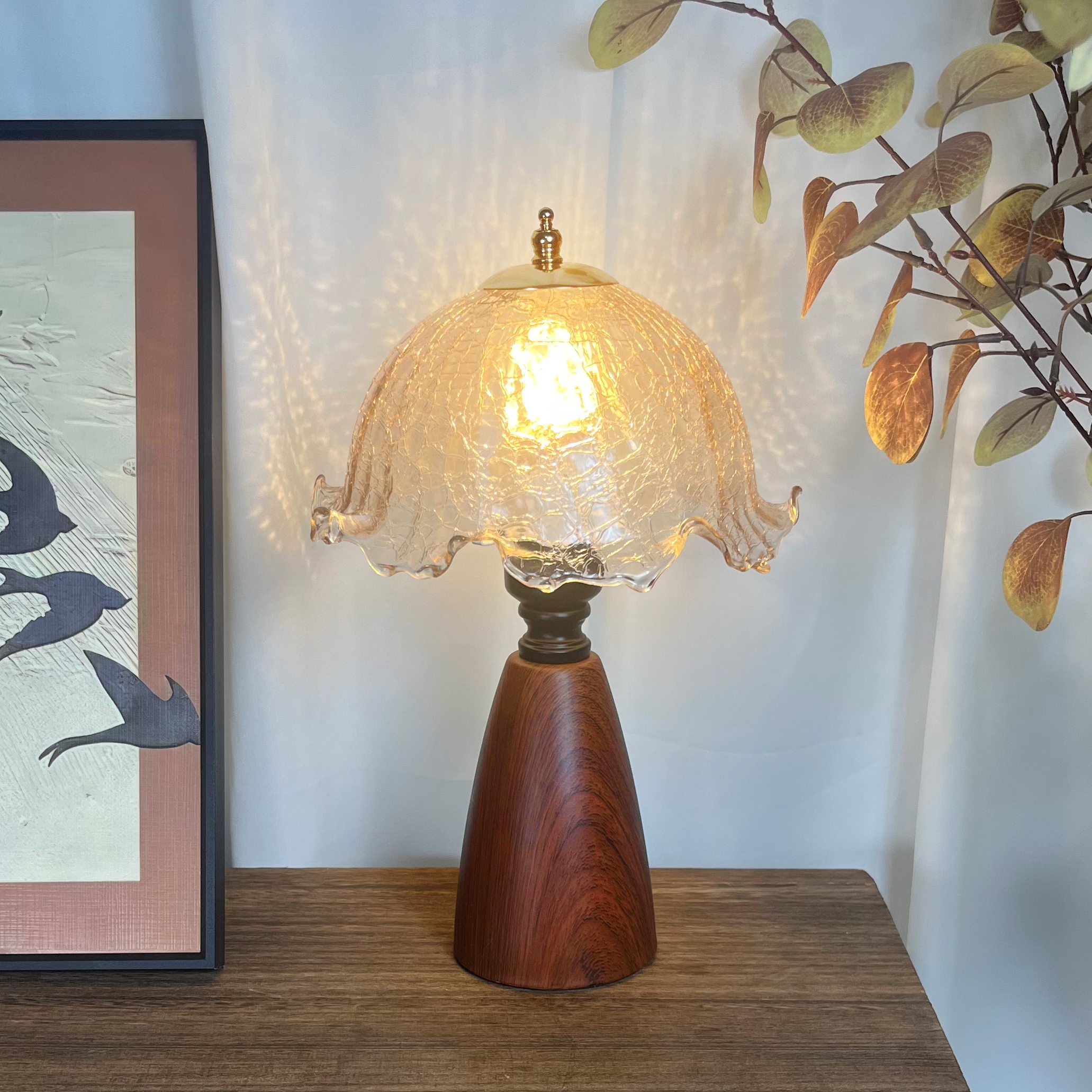 台灯卧室床头灯复古美法式胡桃木色玻璃陶瓷装饰小夜灯