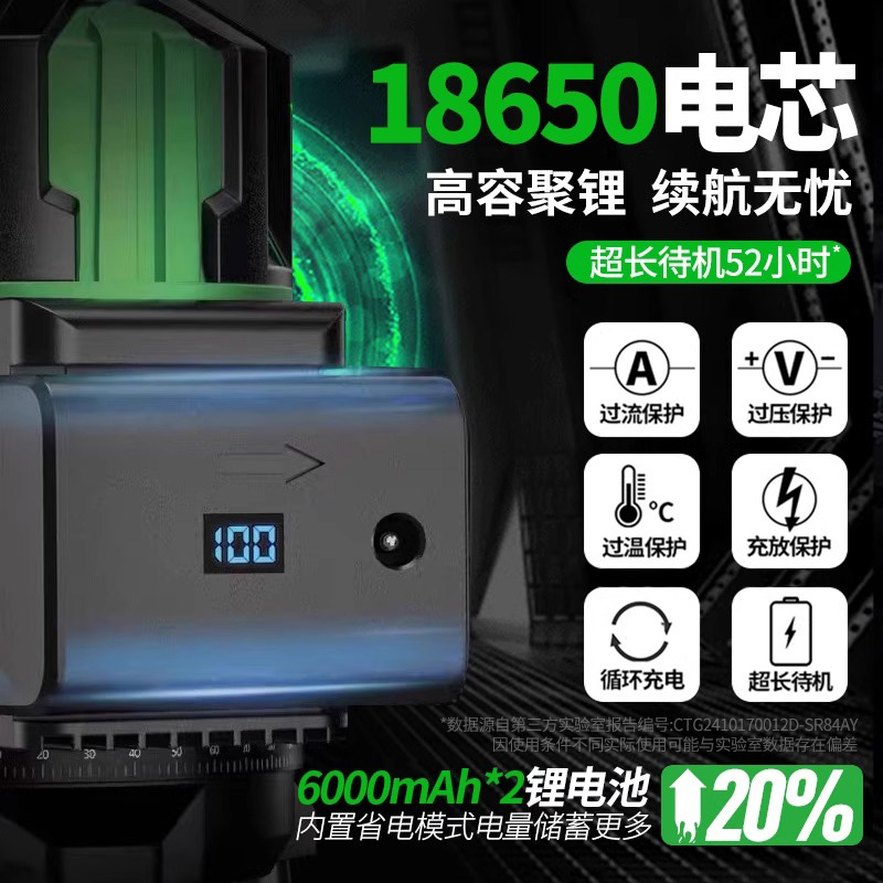 - 户外专用超强绿光3线【豪华箱+数显锂电x2】可调光