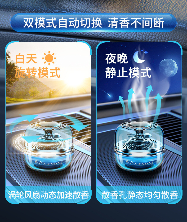 自动旋转车载太阳能自动旋转香薰高级感持久留香空气清新摆件