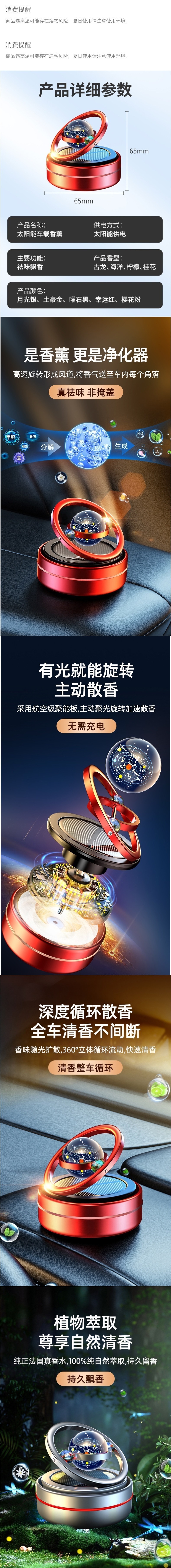 车载太阳能香薰旋转散香双涡轮摆件铝合金座式遇光旋转悬浮式香水