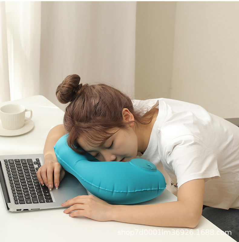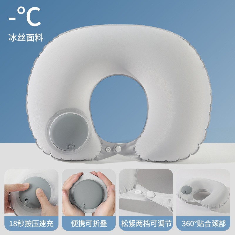 充气枕按压充气便携u型枕护颈枕TPU脖枕可收纳旅游