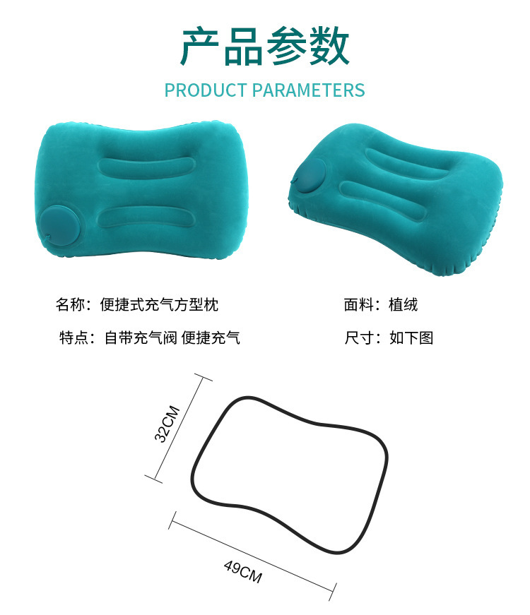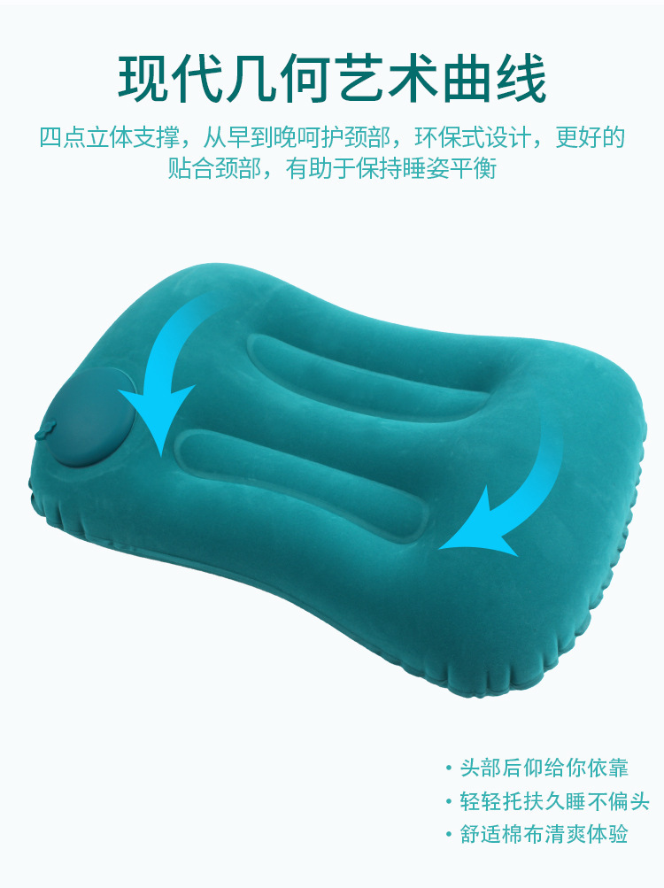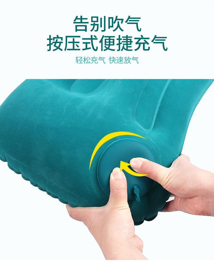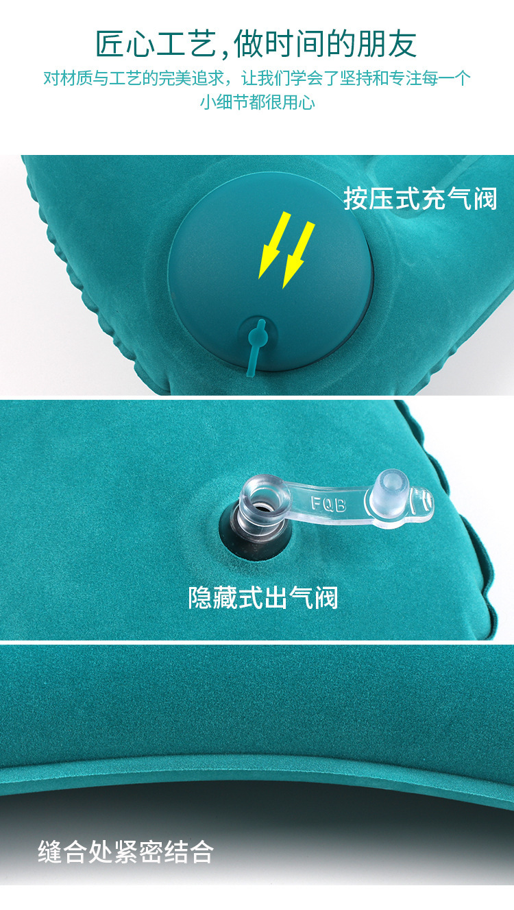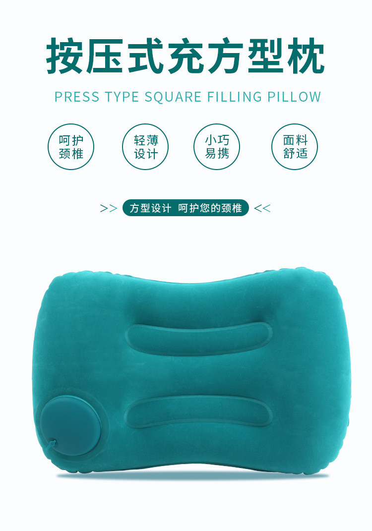 充气枕头植绒 按压自动充气方枕颈枕旅行枕飞机脖枕便携旅游