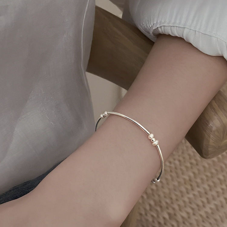 S925纯银淡水珍珠弯管手链女弹力绳光珠手串高级感百搭闺蜜手环
