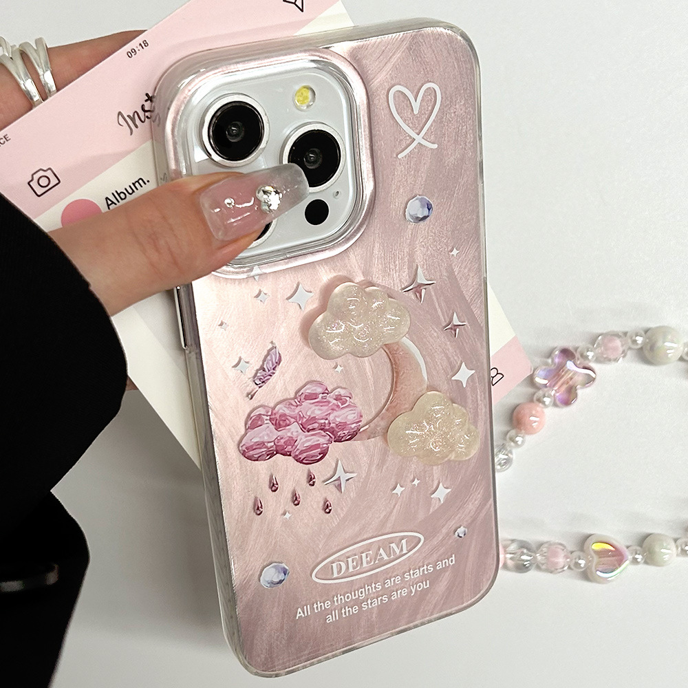 立体粉色云朵iPhone14苹果手机壳15plus爱心手链13pro羽纱xs渐晕7