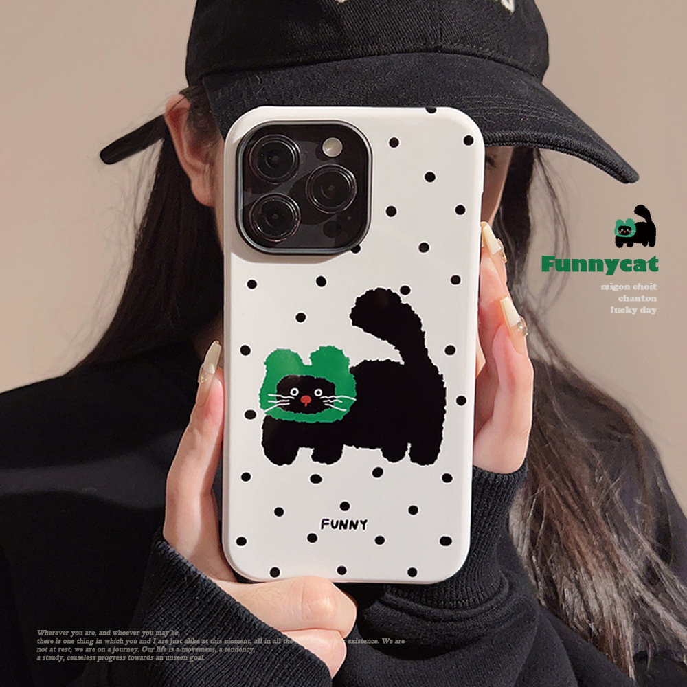 波点小猫咪iPhone15苹果手机壳14promax适用13韩风可爱12菲林11硬
