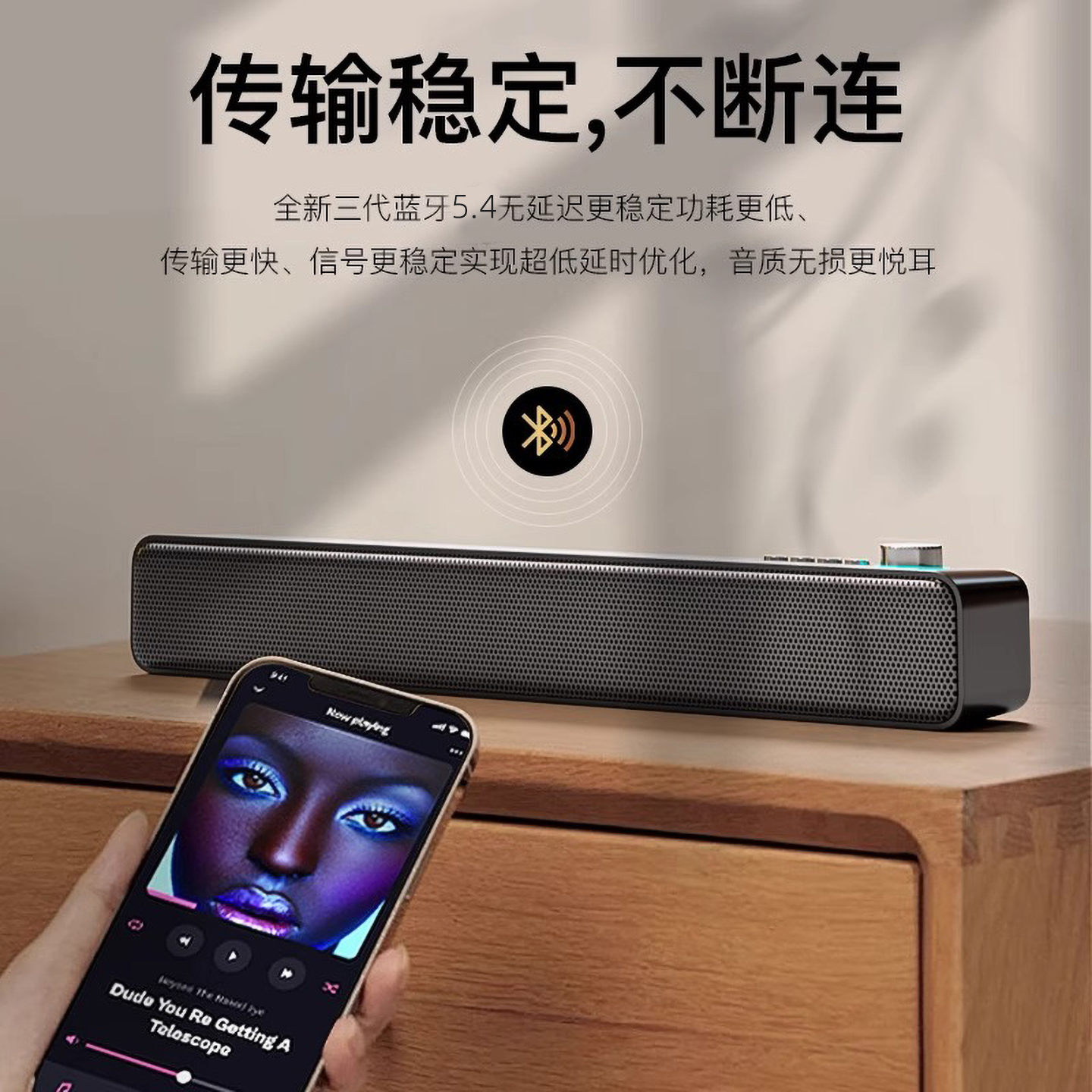 台式电脑桌面长条蓝牙音箱 重低音炮双喇叭音响插卡扬声器