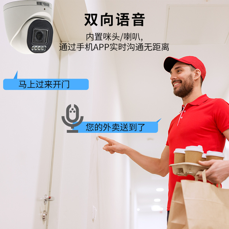 海康协议高清变焦摄像机监控POE网络高清全彩红外半球摄像头夜视