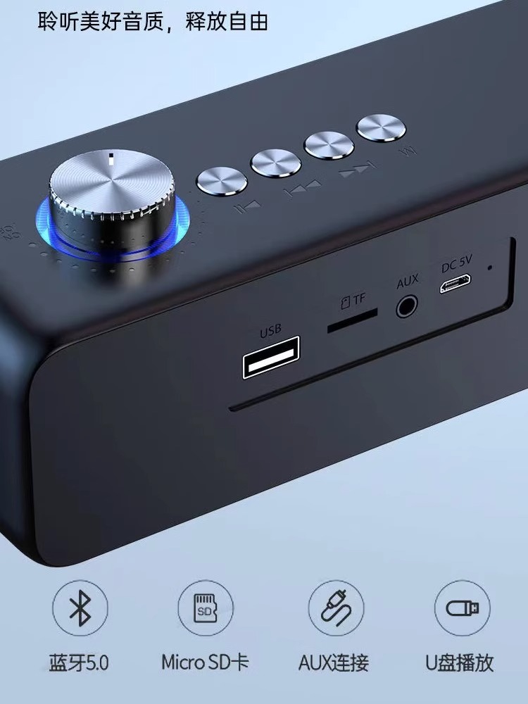 极简风格电视机小型回音壁音响 蓝牙音箱车载低音炮插卡带u盘