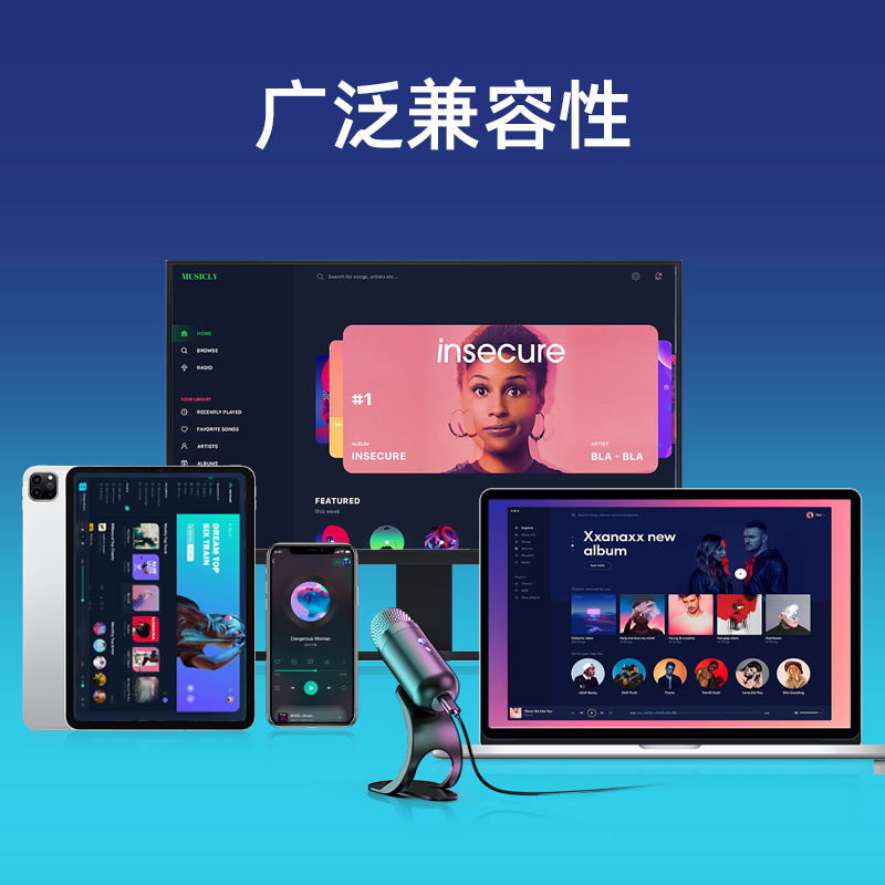 星耀黑USB电容麦克风-超清原声音质❤即插即用