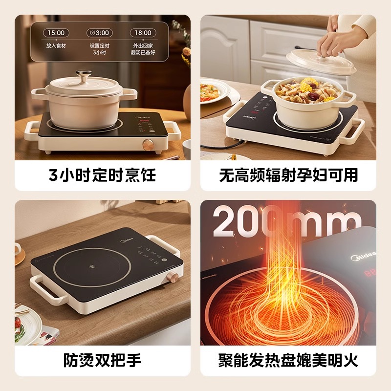 美的电陶炉家用大火力爆炒电磁炉多功能一体防辐智能定时光波炉