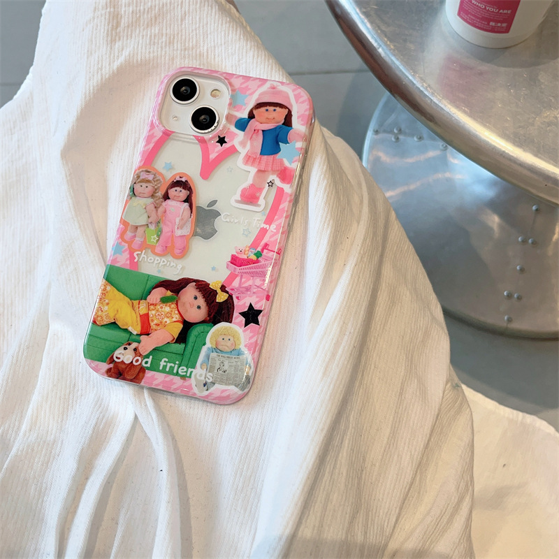 苹果15日韩粉色爱心娃娃适用iPhone14ProMax手机壳全包13双层12女