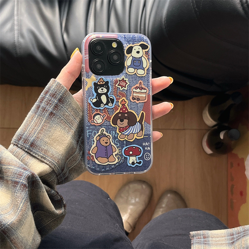 可爱复古牛仔腊肠狗适用iphone15Promax苹果14手机壳13双层12女潮