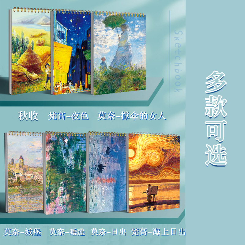 梵高莫奈素描本图画本手绘画纸速写画画本a4成人空白8k套装学生用