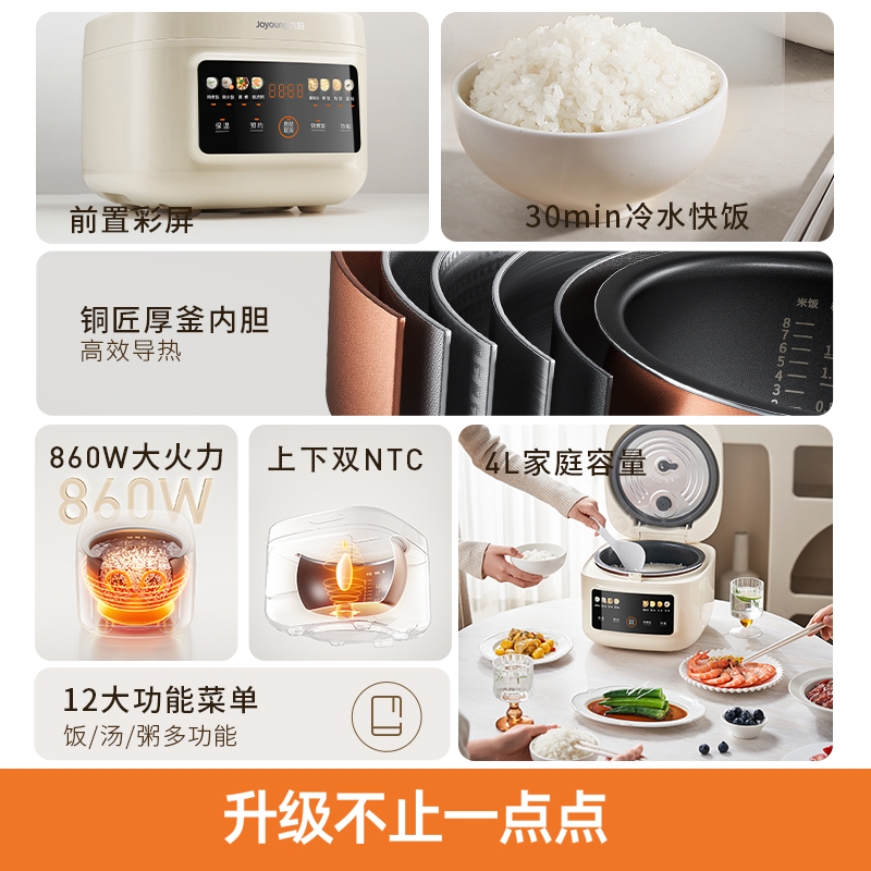 九阳电饭煲家用4L升2一4人智能电饭锅多功能一体锅官方微压烹饪机