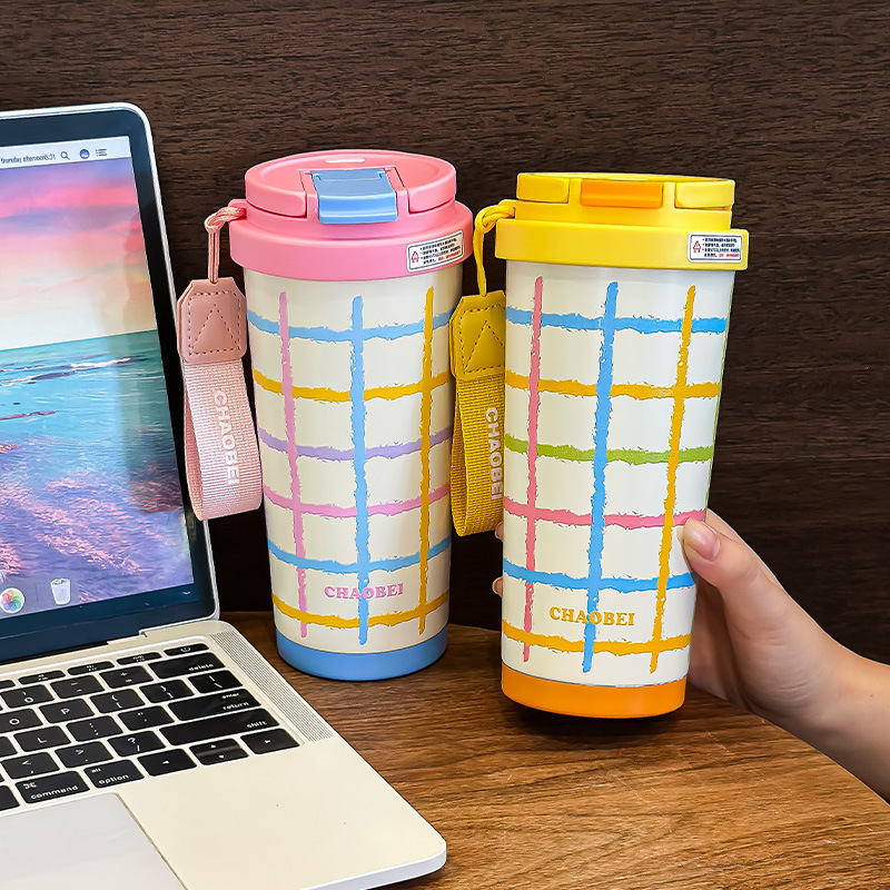 女生可爱高颜值保温杯新款学生大容量吸管水杯办公室咖啡杯子