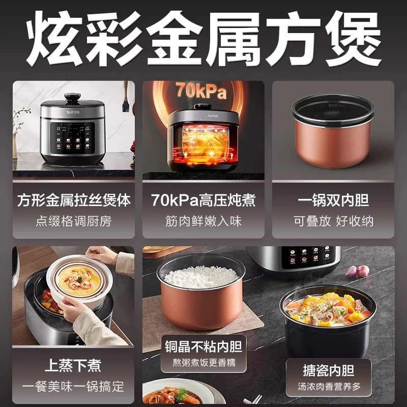 苏泊尔电压力锅家用多功能5L双胆智能高压锅饭煲