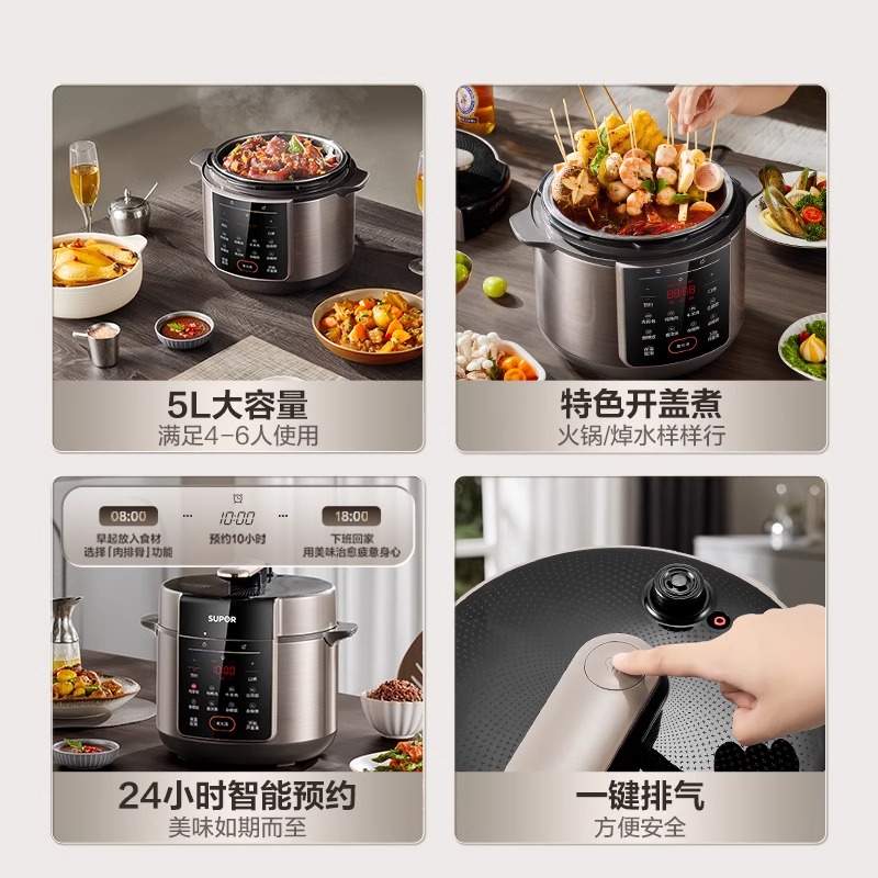 苏泊尔电压力锅0涂层双胆2025新款多功能高压电饭锅5L大容量饭煲