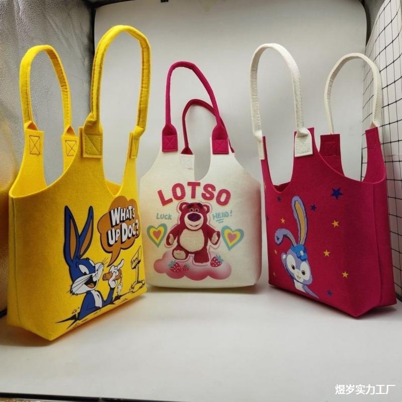 新款大容量网红二家卡通手提毛毡学生手提袋手提包超萌可爱兔子