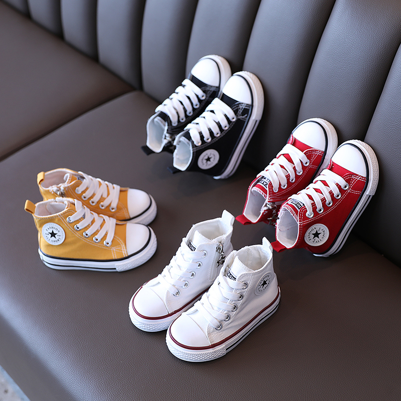 儿童高帮帆布鞋2025年春秋新款男童女童休闲小白鞋韩版中大童板鞋
