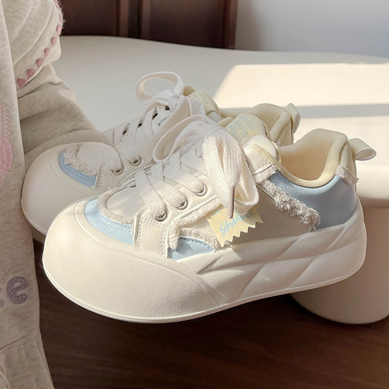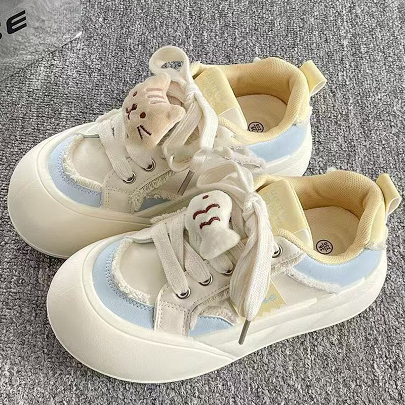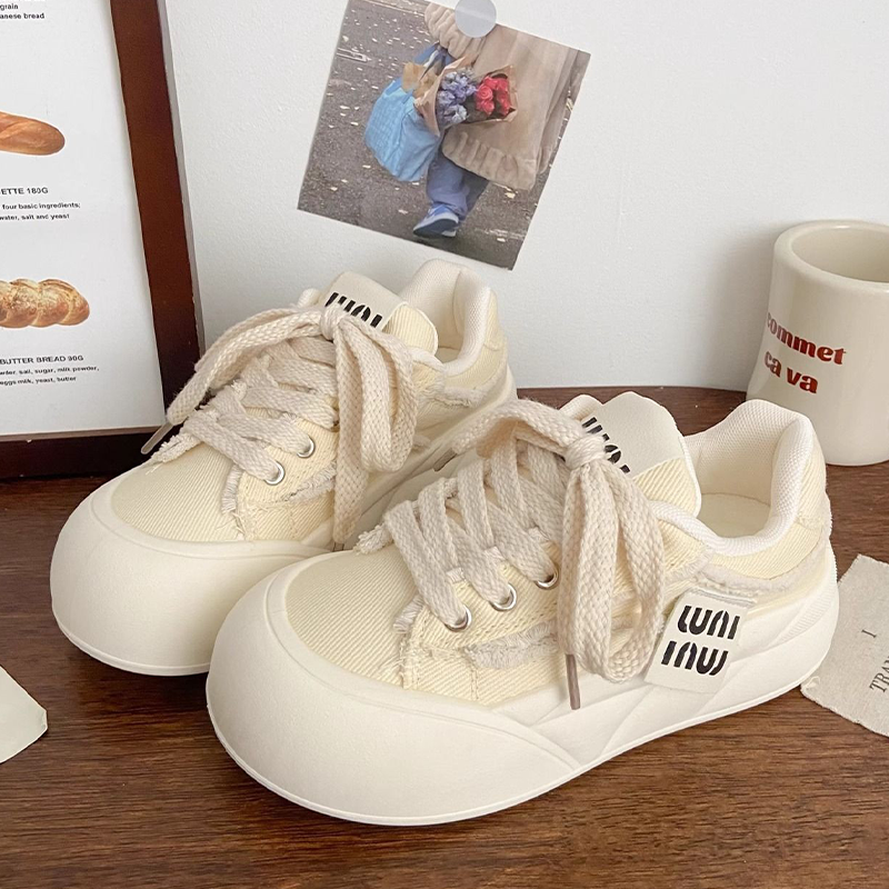 女童厚底小白鞋2025新款春季透气松糕帆布鞋休闲中大童运动面包鞋