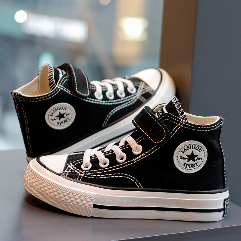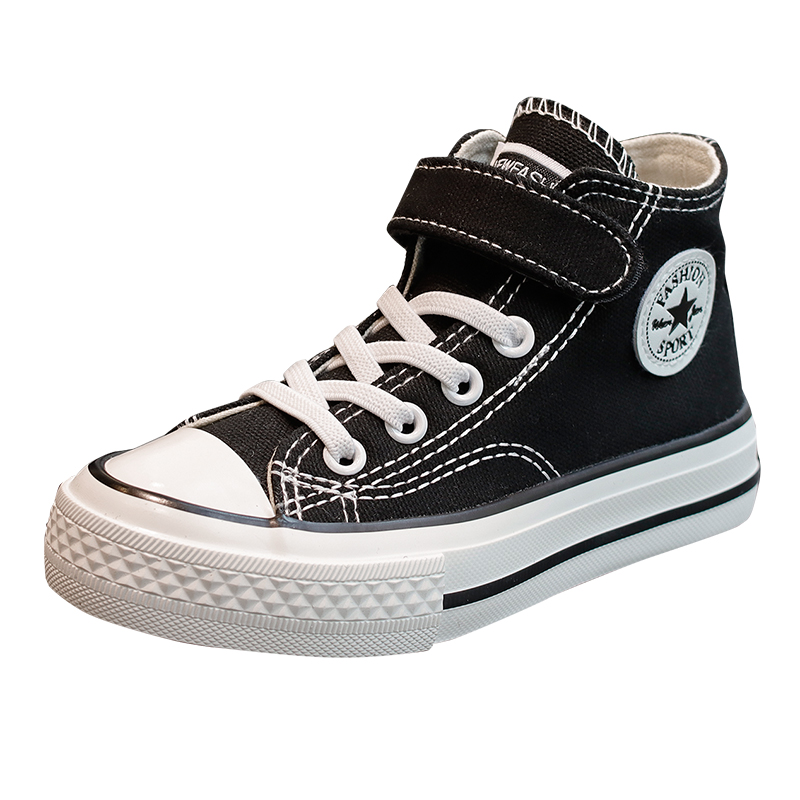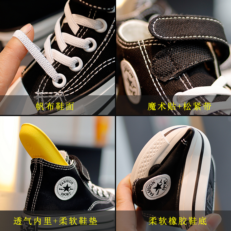 儿童帆布鞋高帮魔术贴童鞋宝宝春秋款男童板鞋运动单鞋女童小白鞋