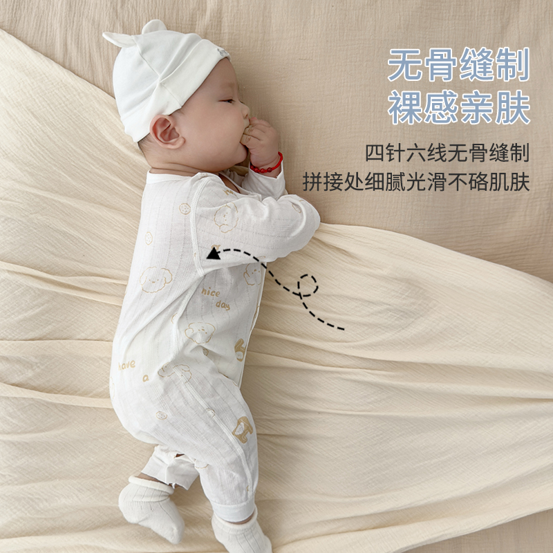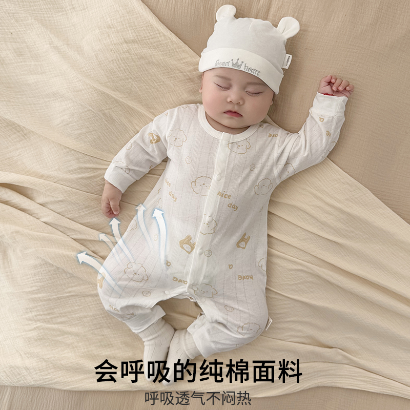 婴儿连体衣纯棉薄款新生婴幼儿衣服长袖春夏小月龄宝宝空调服睡衣