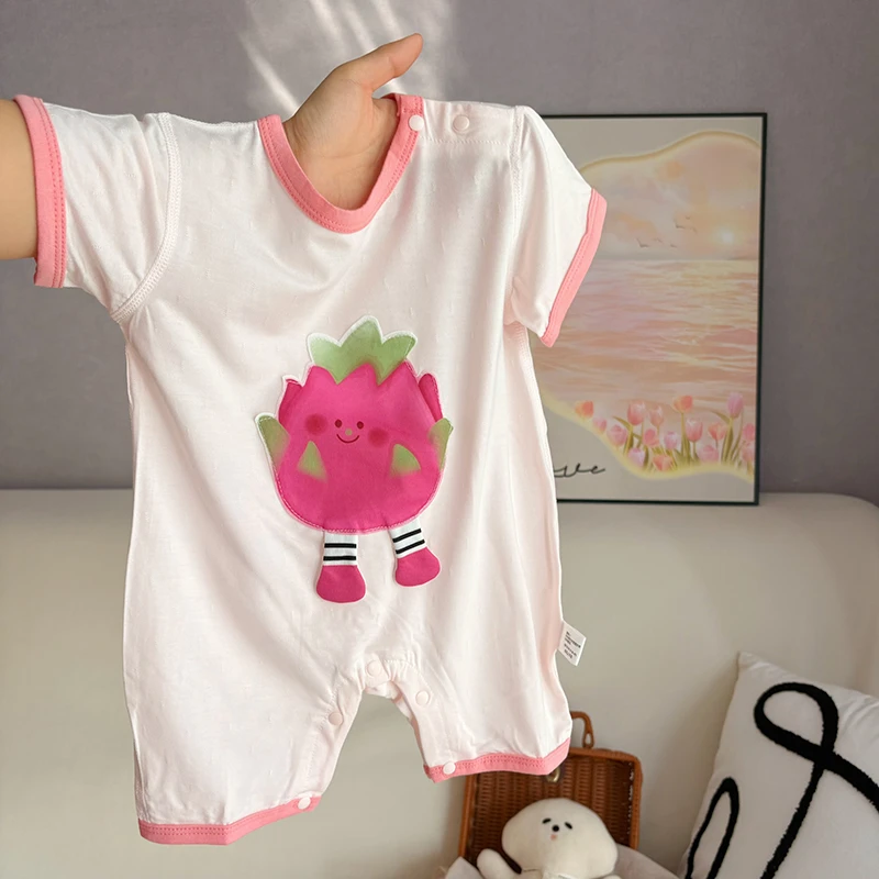 短袖婴儿连体衣夏季薄款空调服宝宝超萌可爱短爬服透气舒适莫代尔