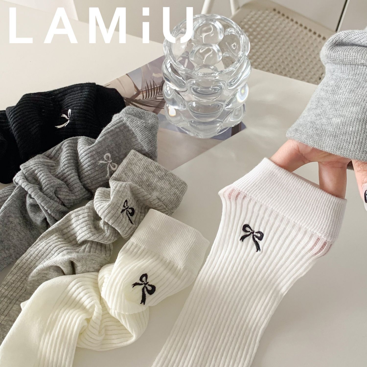 袜子女夏季超薄款蝴蝶结ins风女中筒纯色棉质透气网眼春夏中筒袜
