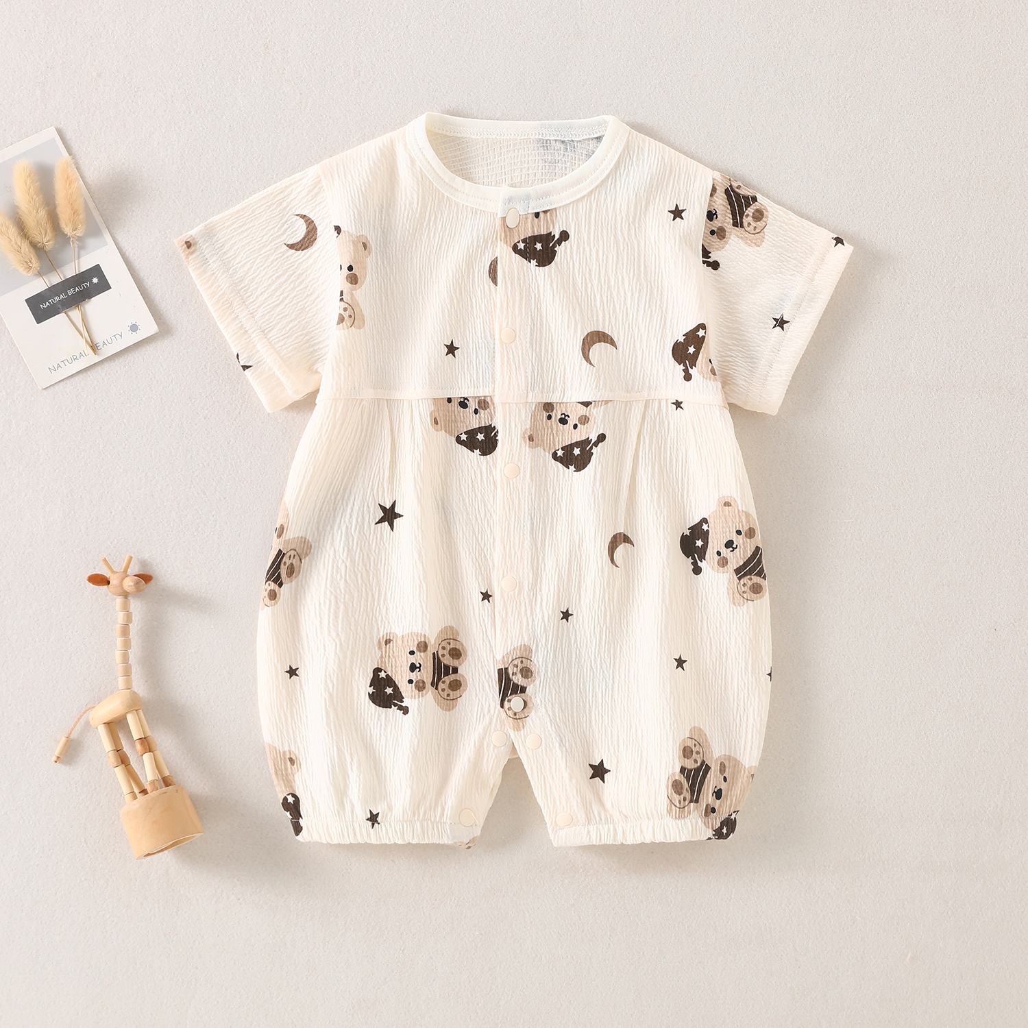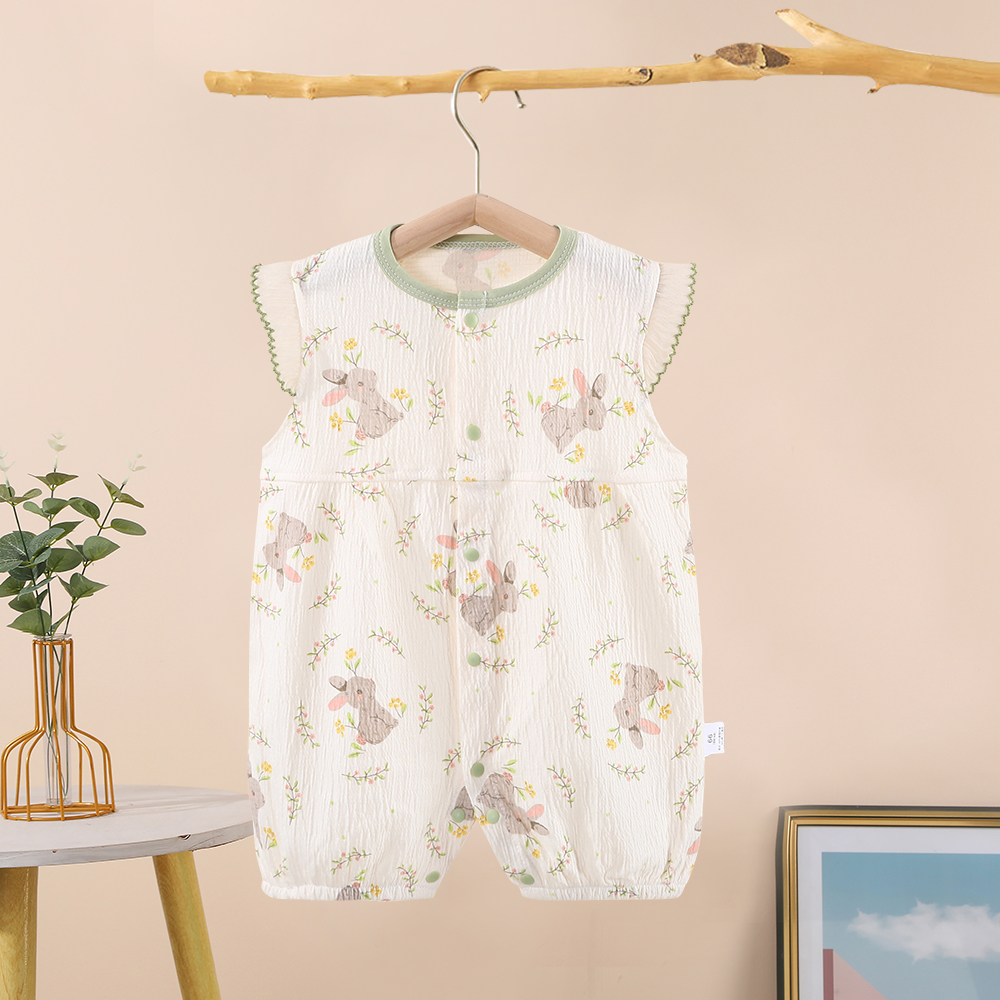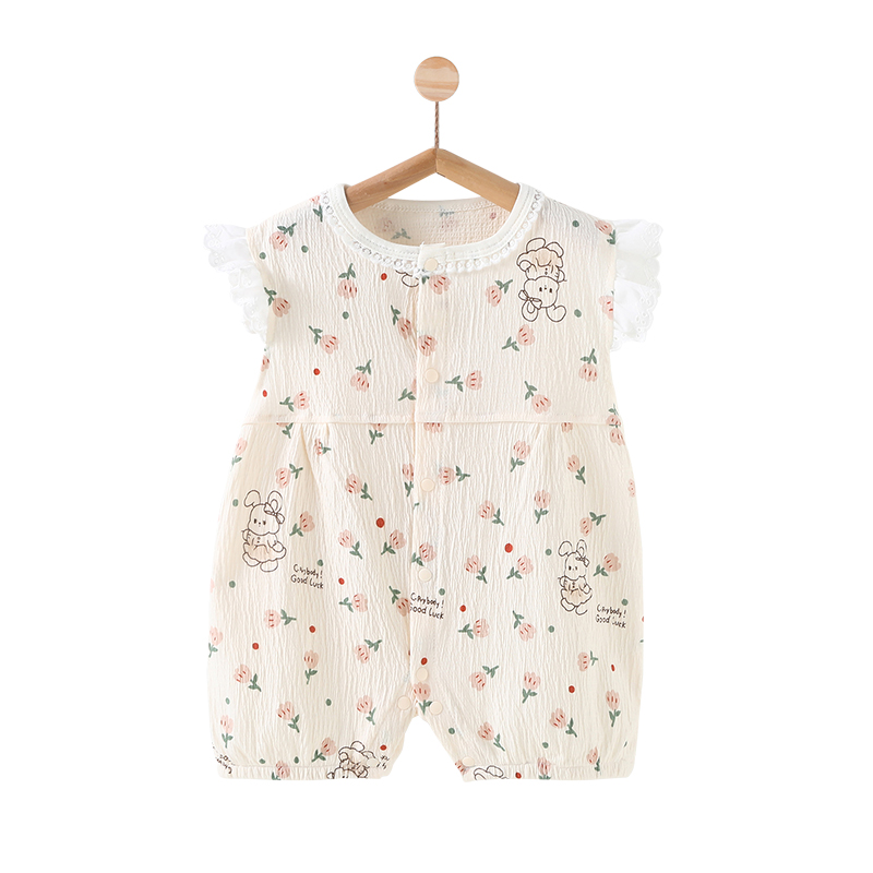 女宝宝连体衣夏装短袖爬爬服小碎花韩版衣服幼儿类薄款婴儿哈衣