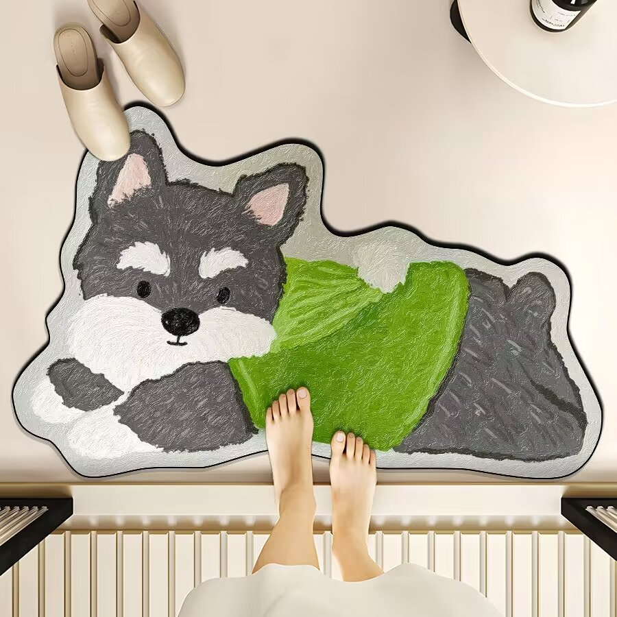 硅藻泥吸水地垫卡通风小狗浴室防滑脚踏垫卫生间厕所门口防摔地垫