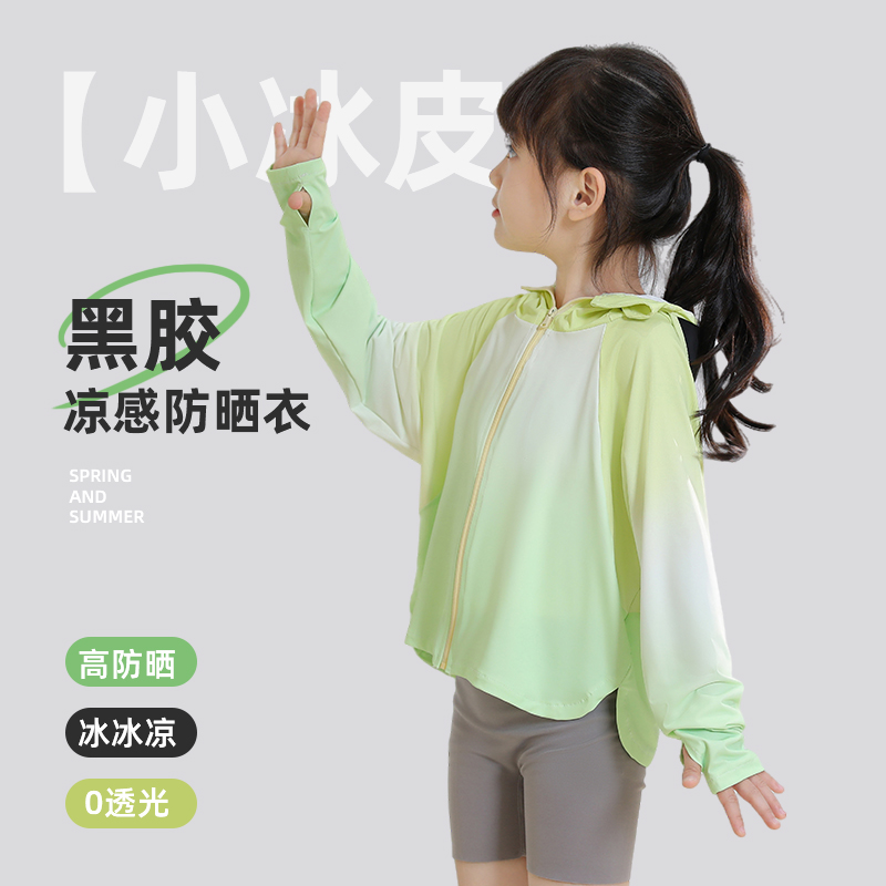 儿童防晒衣夏冰丝原纱防紫外线男女宝宝防晒服黑胶UPF50+