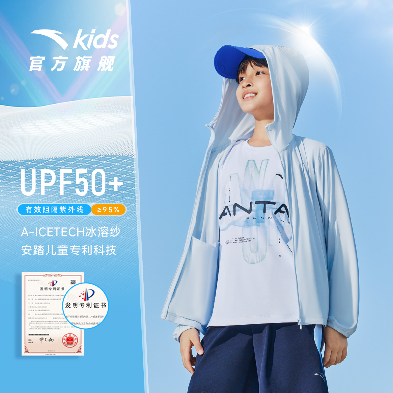 安踏童装2025年儿童防晒服UPF50+女童透气薄外套防晒衣