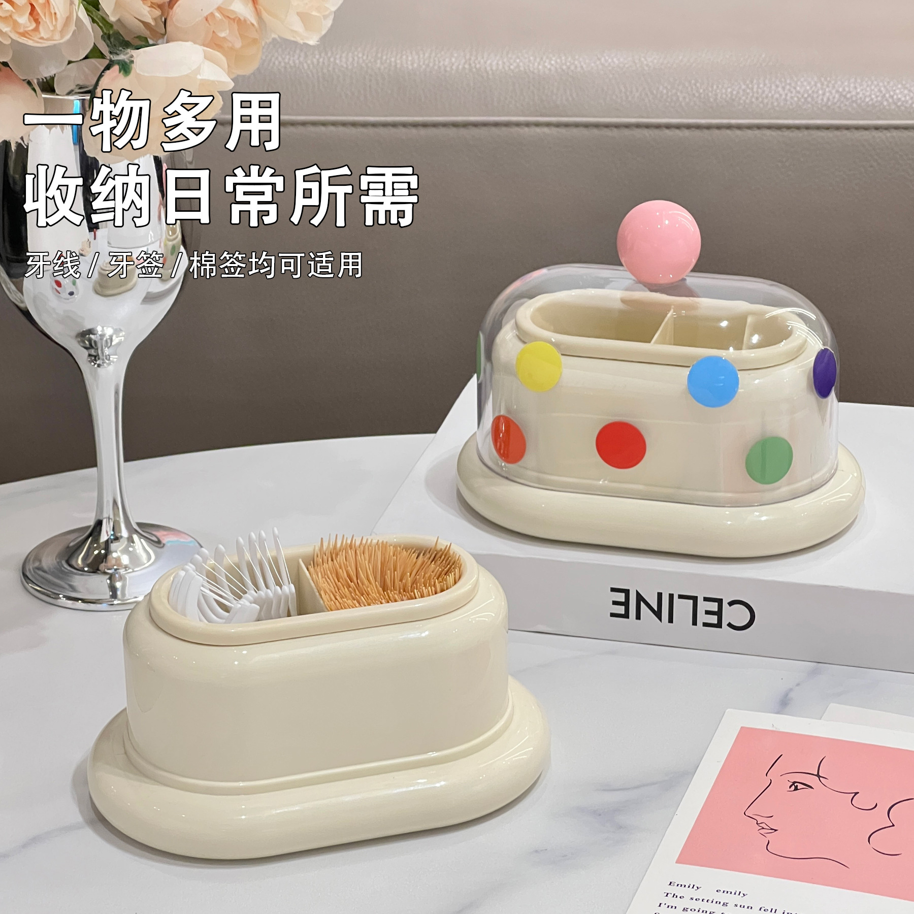 客厅餐桌多巴胺牙签盒家用可爱创意高颜值棉签筒牙签筒牙线收纳盒