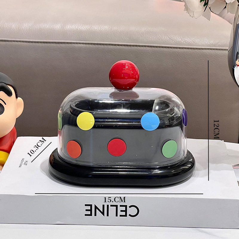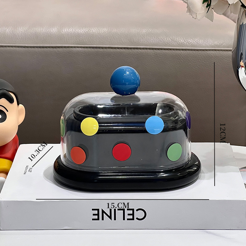 - 多巴胺双格牙签筒【酷黑-红珠+波点贴纸】