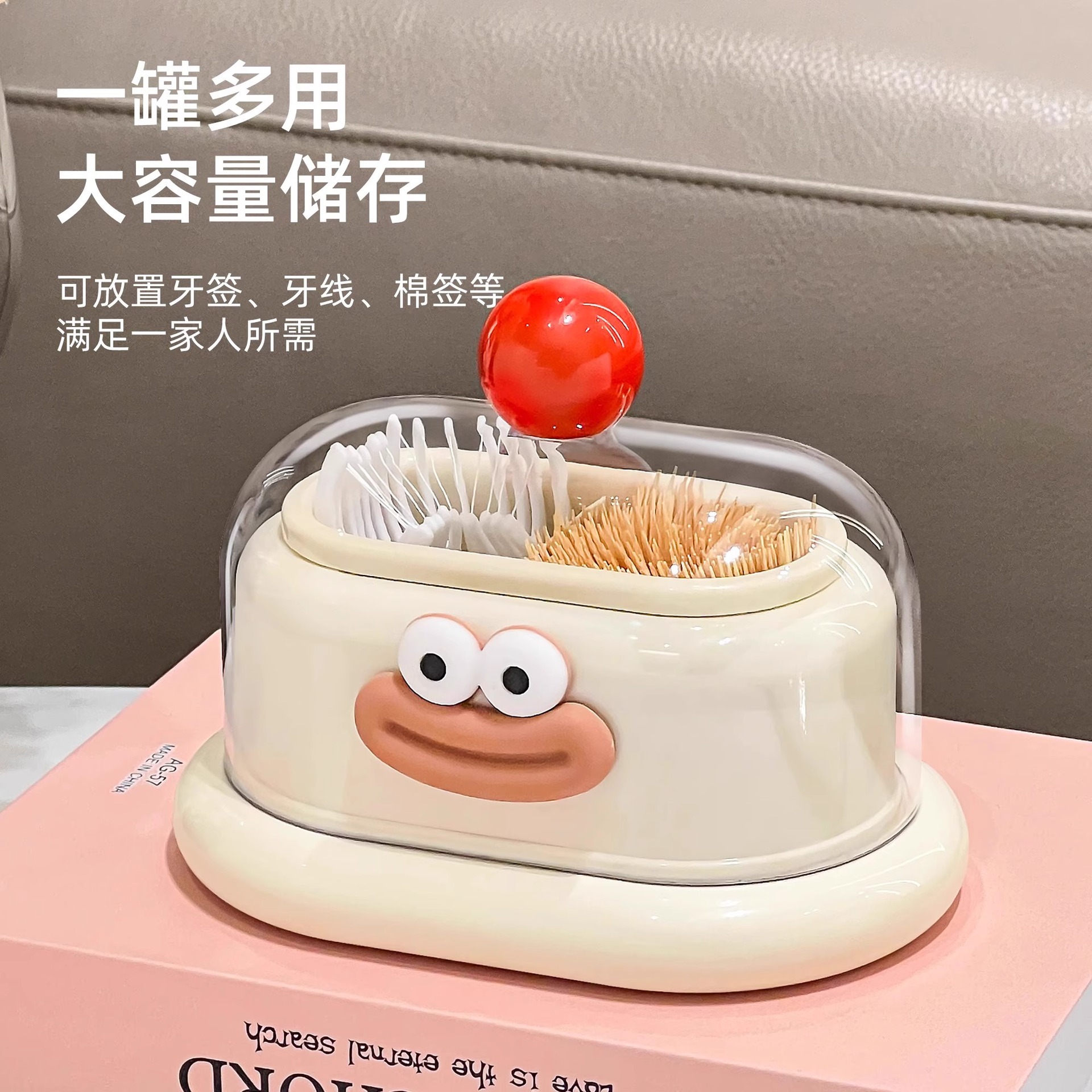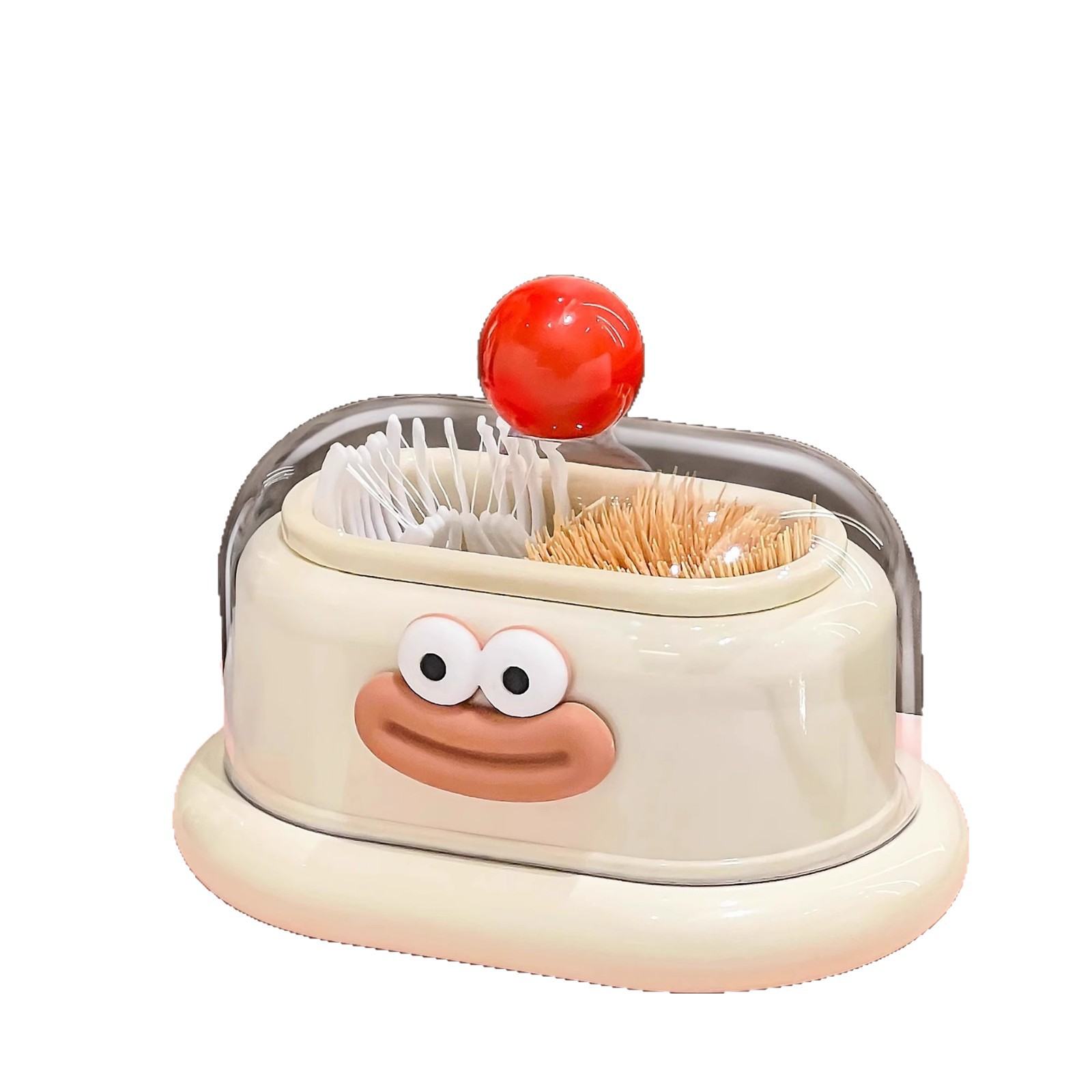 - 多巴胺双格牙签筒【奶白-红珠+香肠嘴】