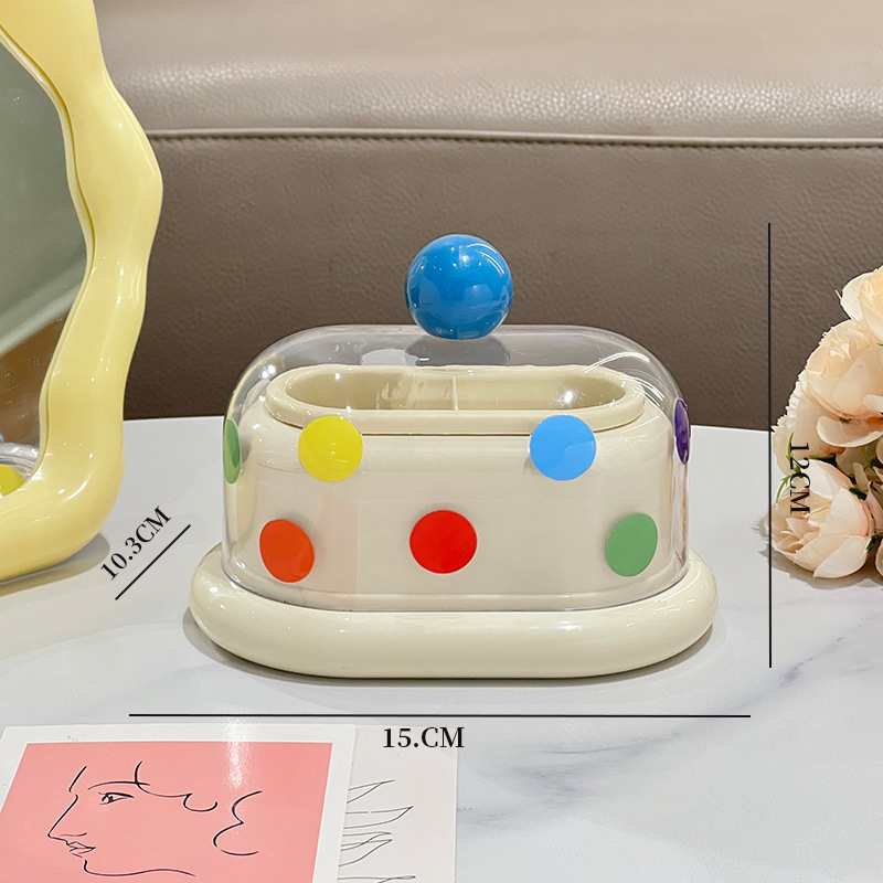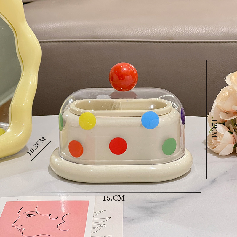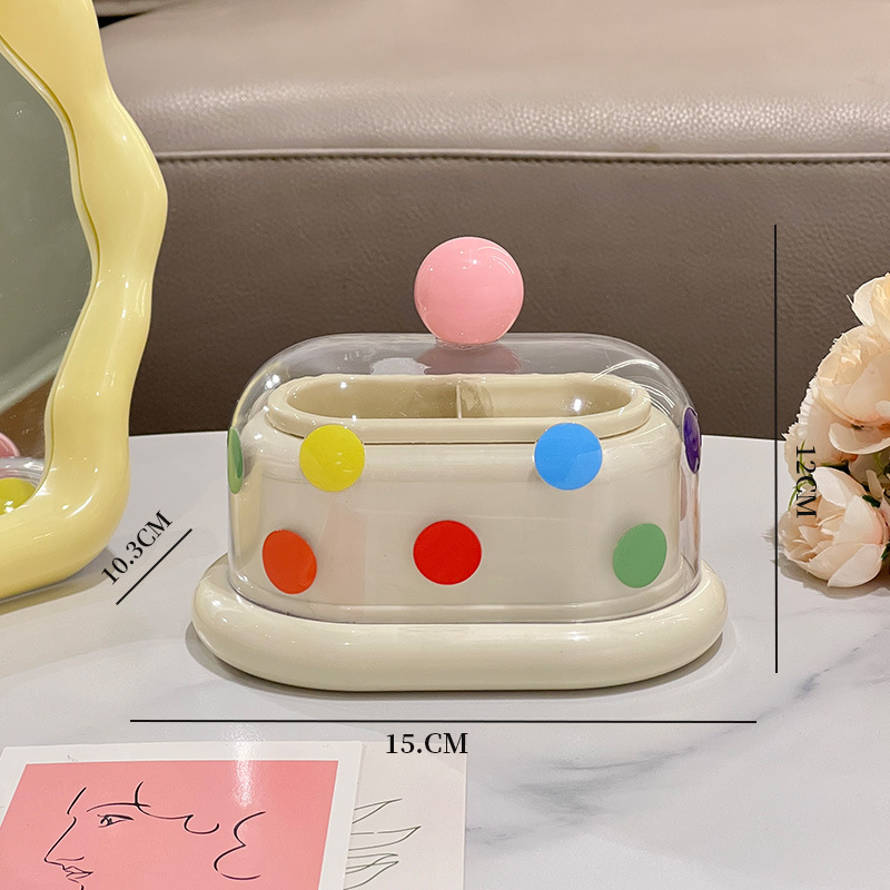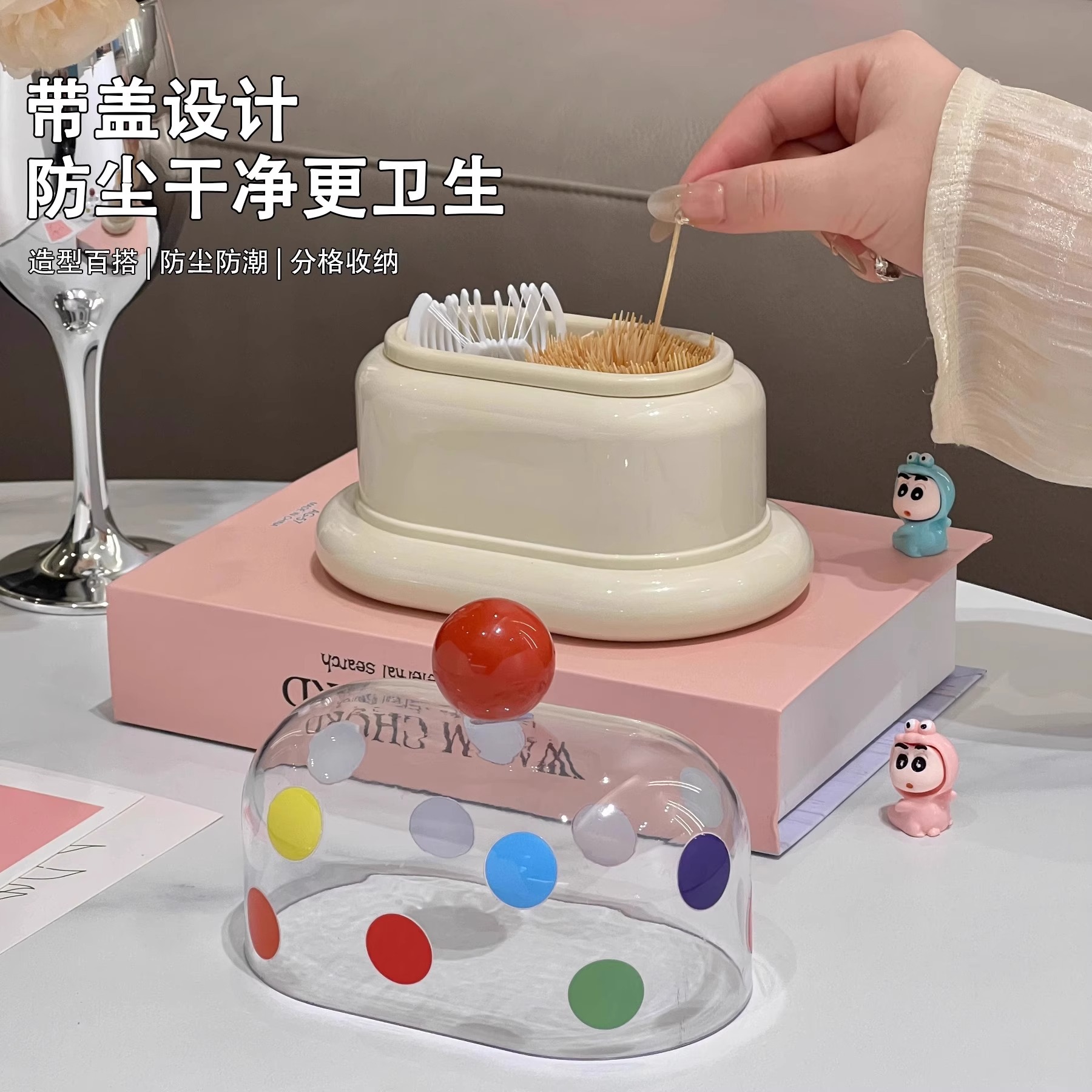 - 多巴胺双格牙签筒【奶白-红珠+波点贴纸】