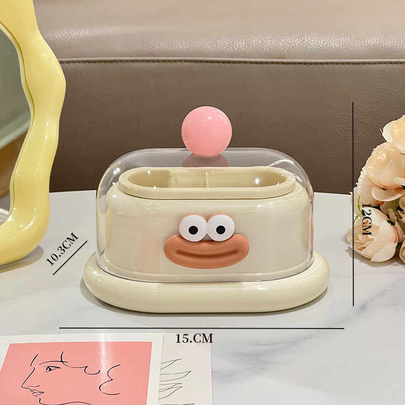 - 多巴胺双格牙签筒【奶白-蓝珠+波点贴纸】