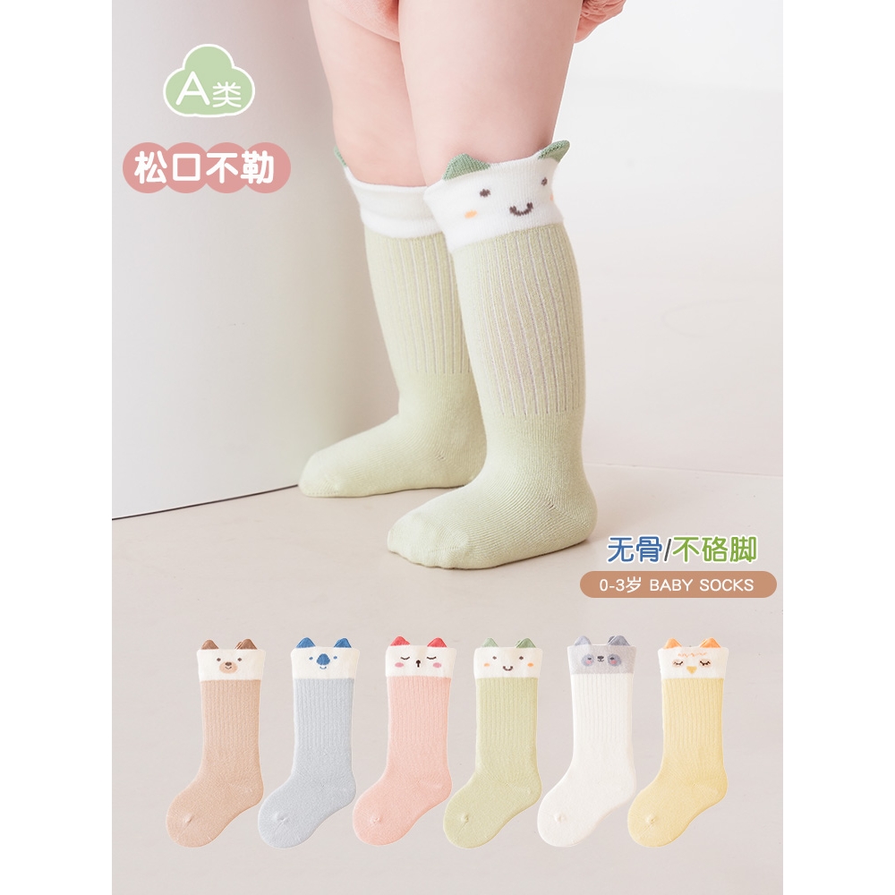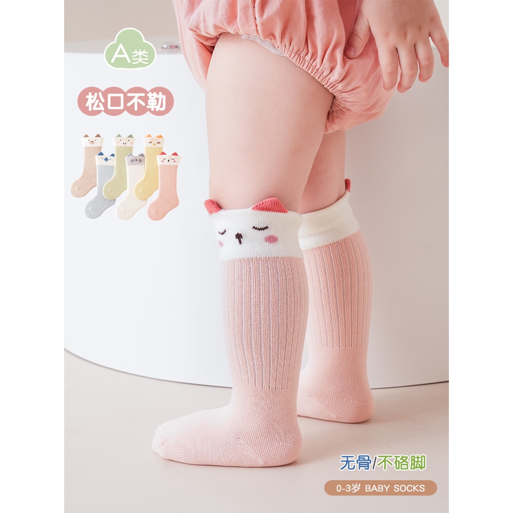 婴儿袜子春秋0-3个新生儿中长筒棉袜男女童胖宝宝膝盖袜中筒
