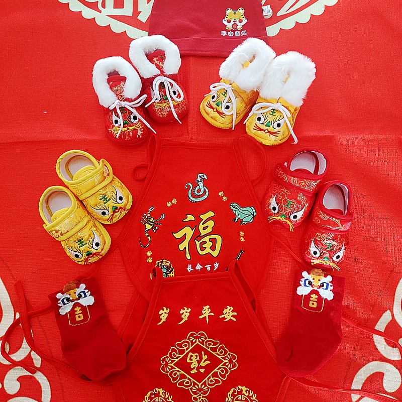 结婚嫁妆子孙鞋肚兜宝宝虎头鞋婴儿袜子帽子