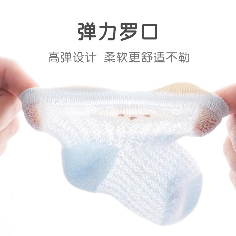 婴儿袜子夏季薄款纯色透气网眼新生儿宝宝无骨棉袜男女儿童中筒袜