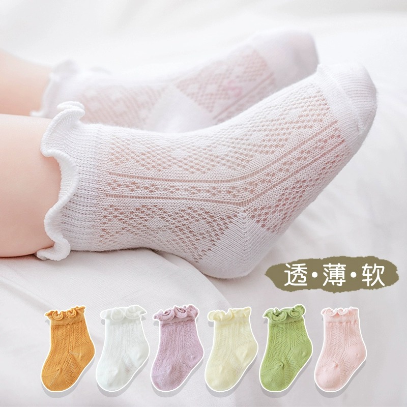 婴儿袜子夏季薄款棉袜宝宝夏天网眼透气防蚊袜0一3月新生儿松口袜