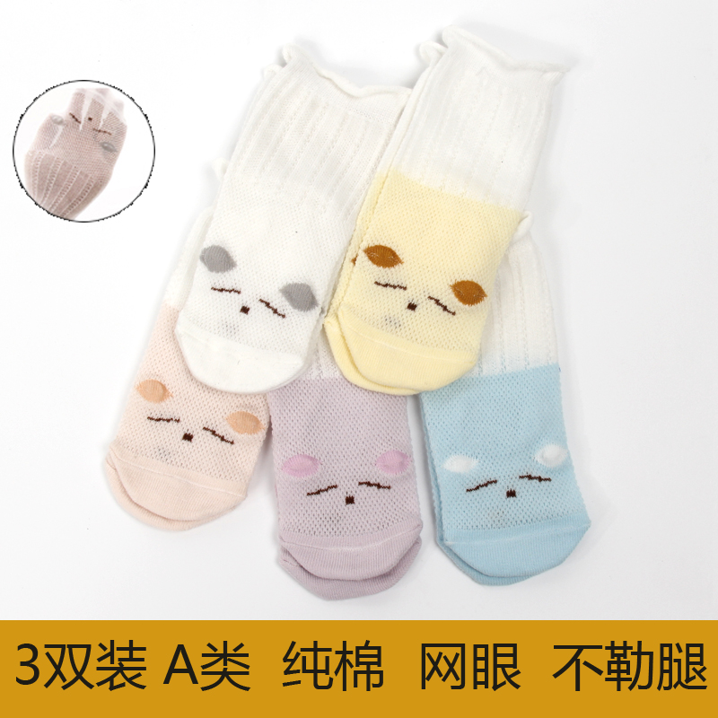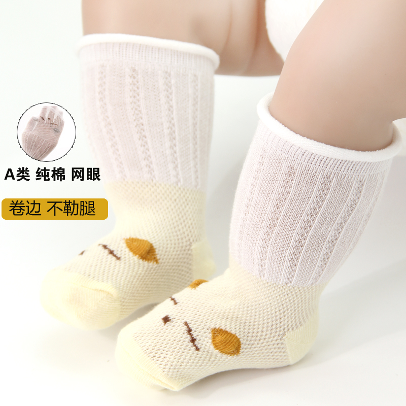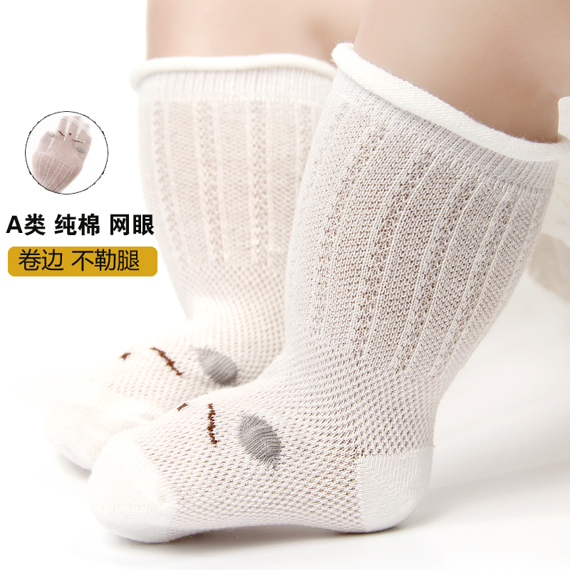 婴儿袜子夏季薄款纯棉0一3月新生儿宝宝中筒袜夏天网眼透气不勒腿