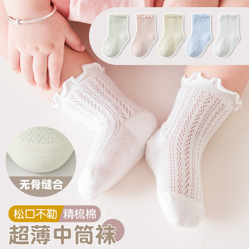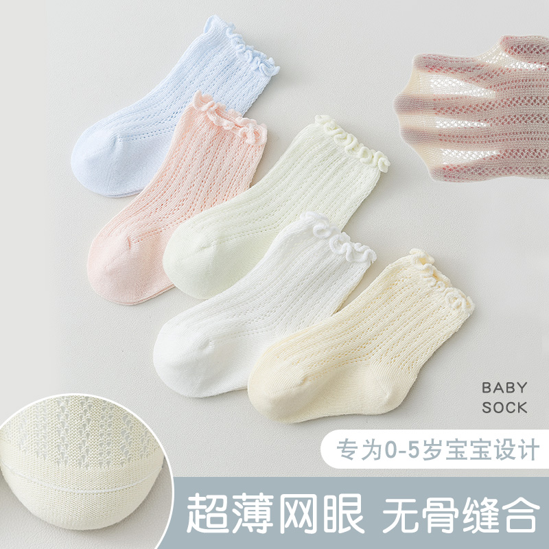 婴儿袜子夏季薄款短袜胖宝宝不勒夏天透气网眼新生儿春秋无骨棉袜